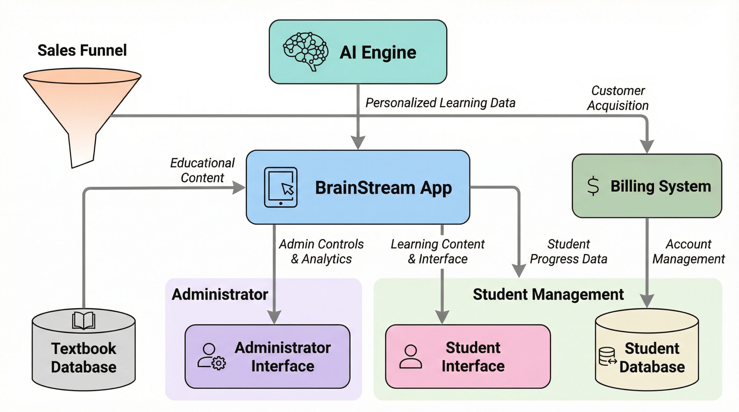 BrainStream is a pioneering technology that makes learning fun and interactive. We turn textbooks into experiences, where students can dive into the material at any point, test their knowledge of any topic whenever they like, and receive personalized feedback and study recommendations instantly.